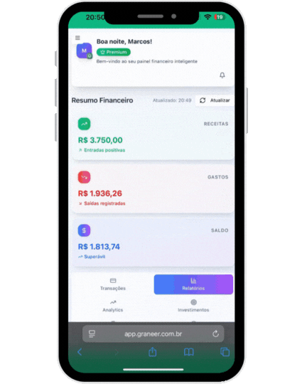 A Inteligência Artificial do Graneer categoriza automaticamente seus gastos e receitas, dando clareza às suas finanças.